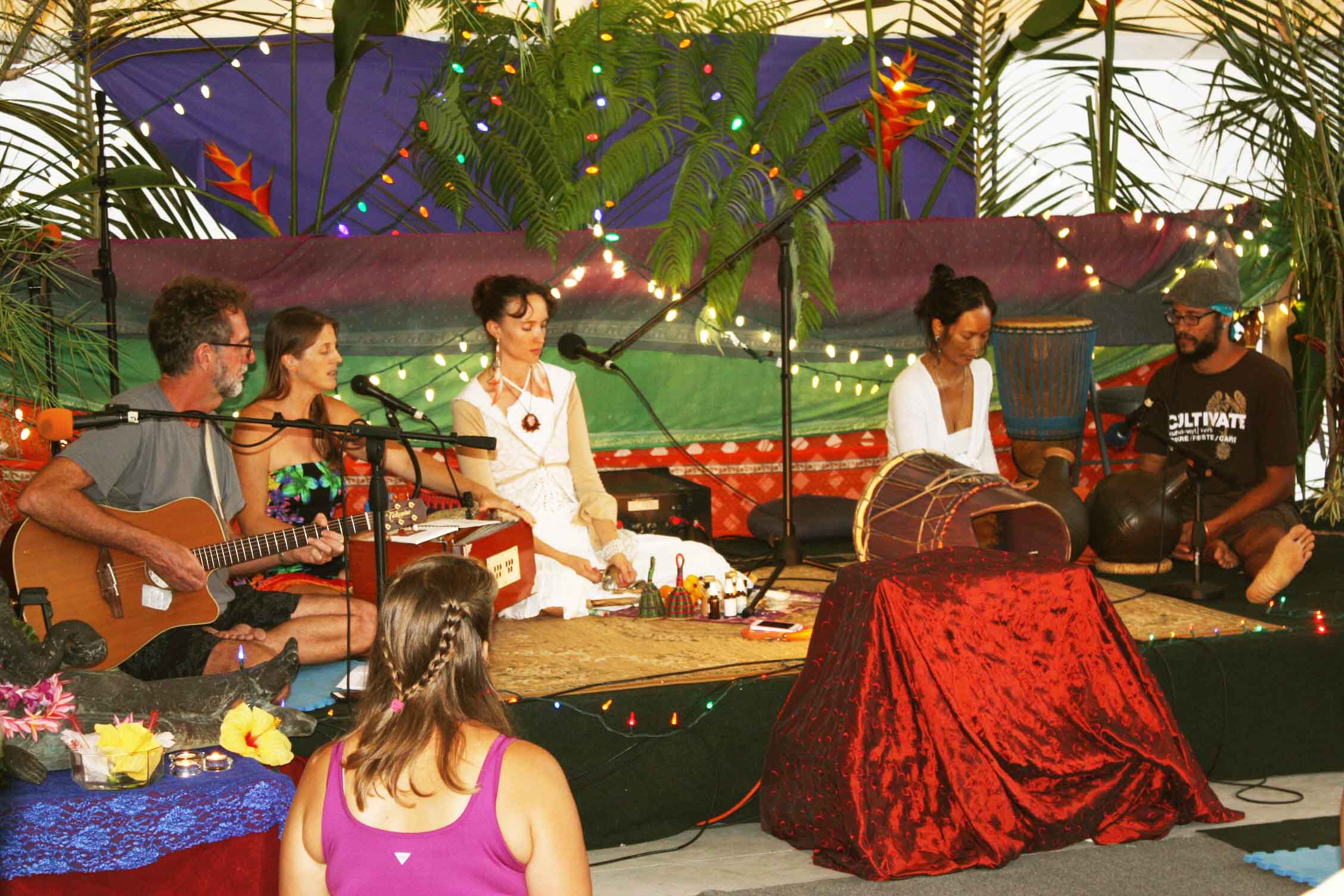 The festival is open to all lovers of kirtan, sacred music, bhakti, meditation, fun and spiritual community in Hawaii. It takes place at Polestar Gardens near the town of Pahoa on the Big Island of Hawaii.